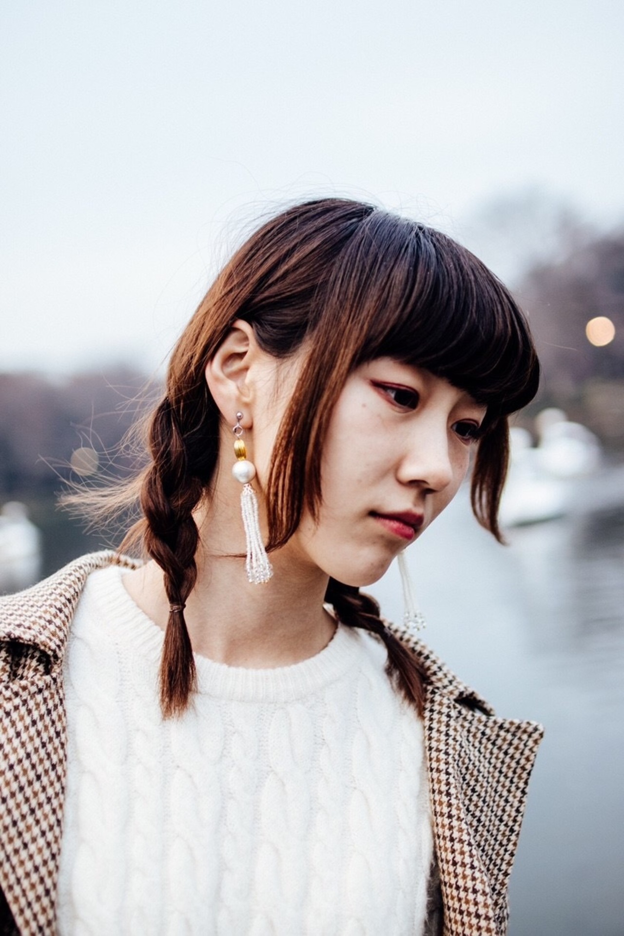 ビーズとコットンパールのピアスになります。ゴールデンナッツはチェコ製ヴィンテージを使用しております。
