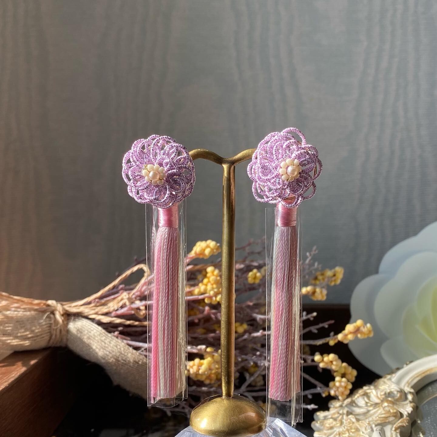 水引お花タッセル桃色✖️白(和装も普段着にも合います)