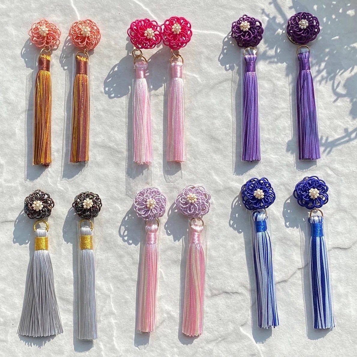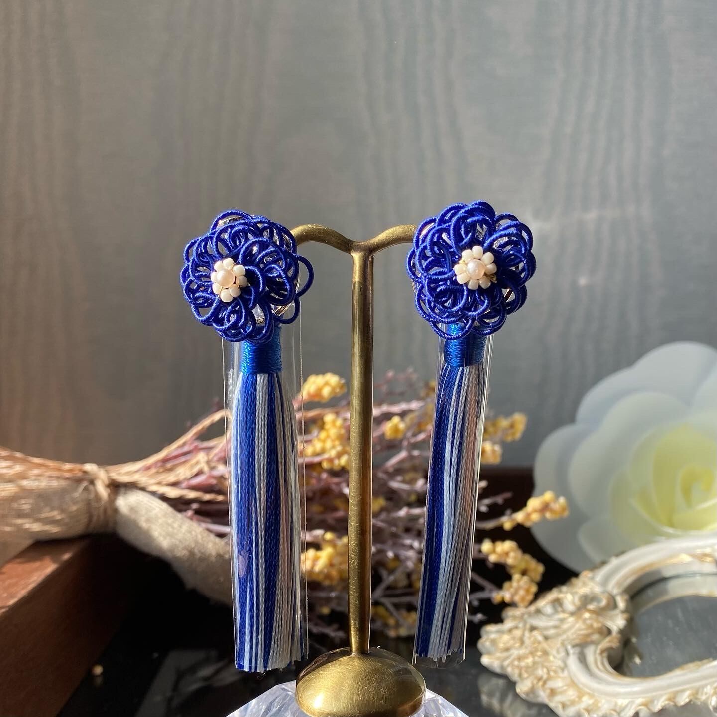 水引お花タッセル青✖️白(和装も普段着にも合います)