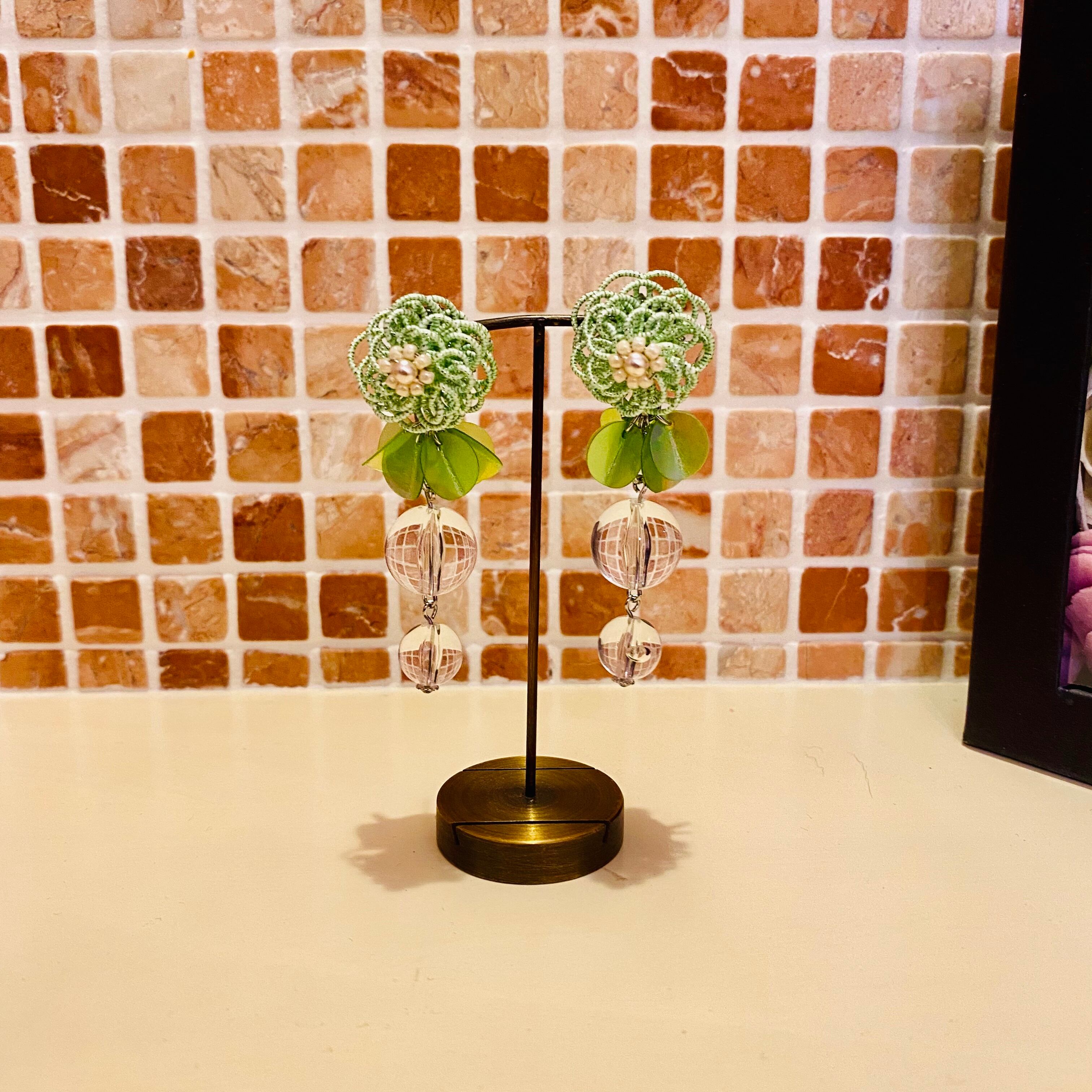 水引のお花にスパンコールとアクリルビーズの組み合わせです。