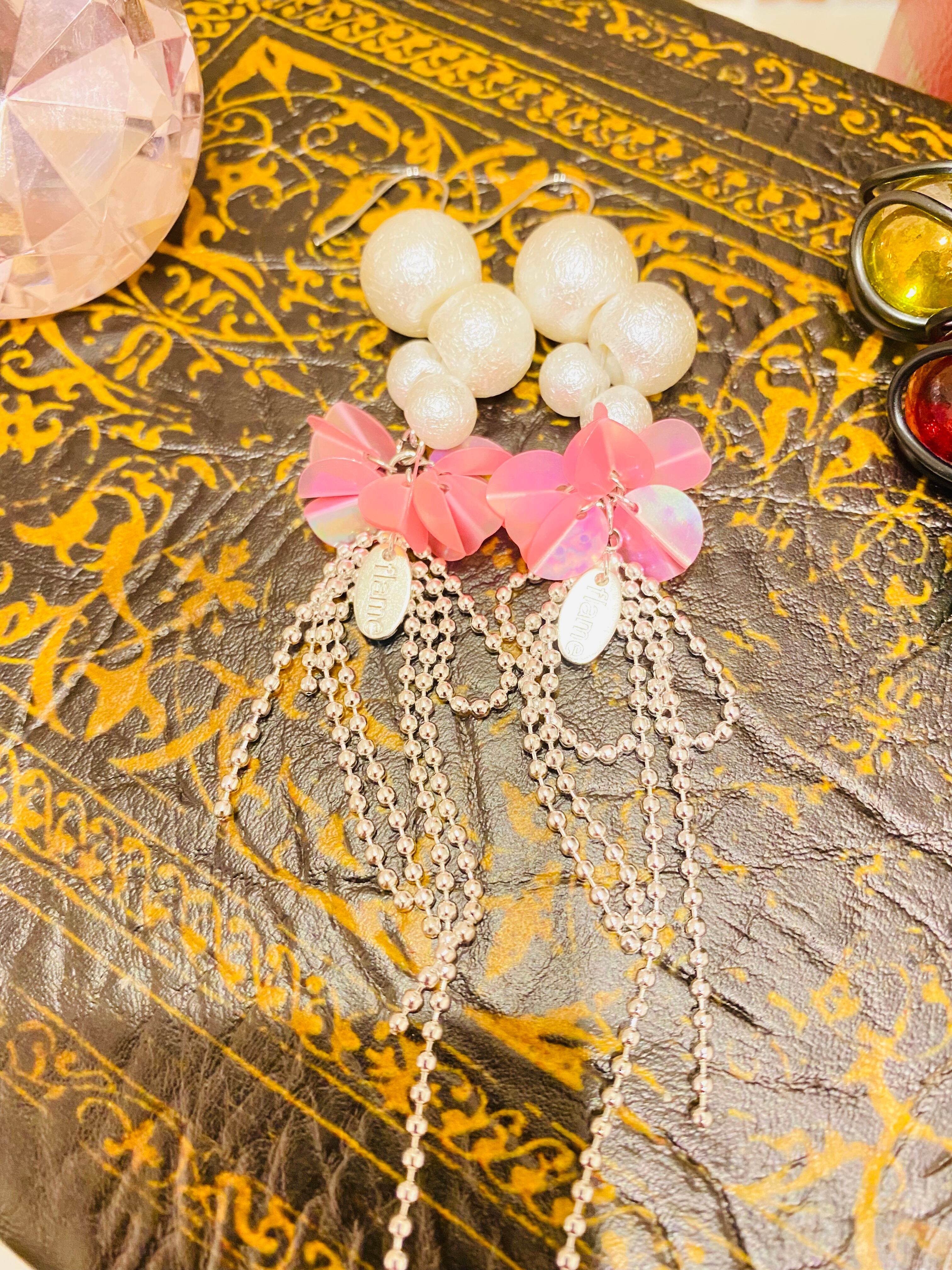 鈴丸コットンパール調とメタルタッセルピアス 丸型オーロラピンク