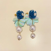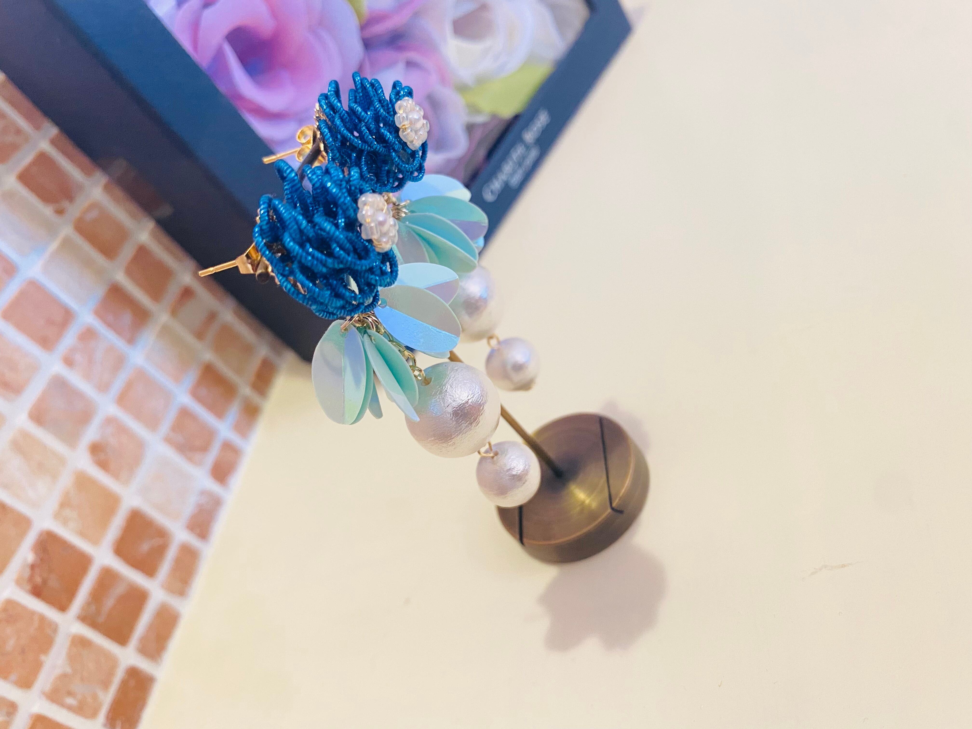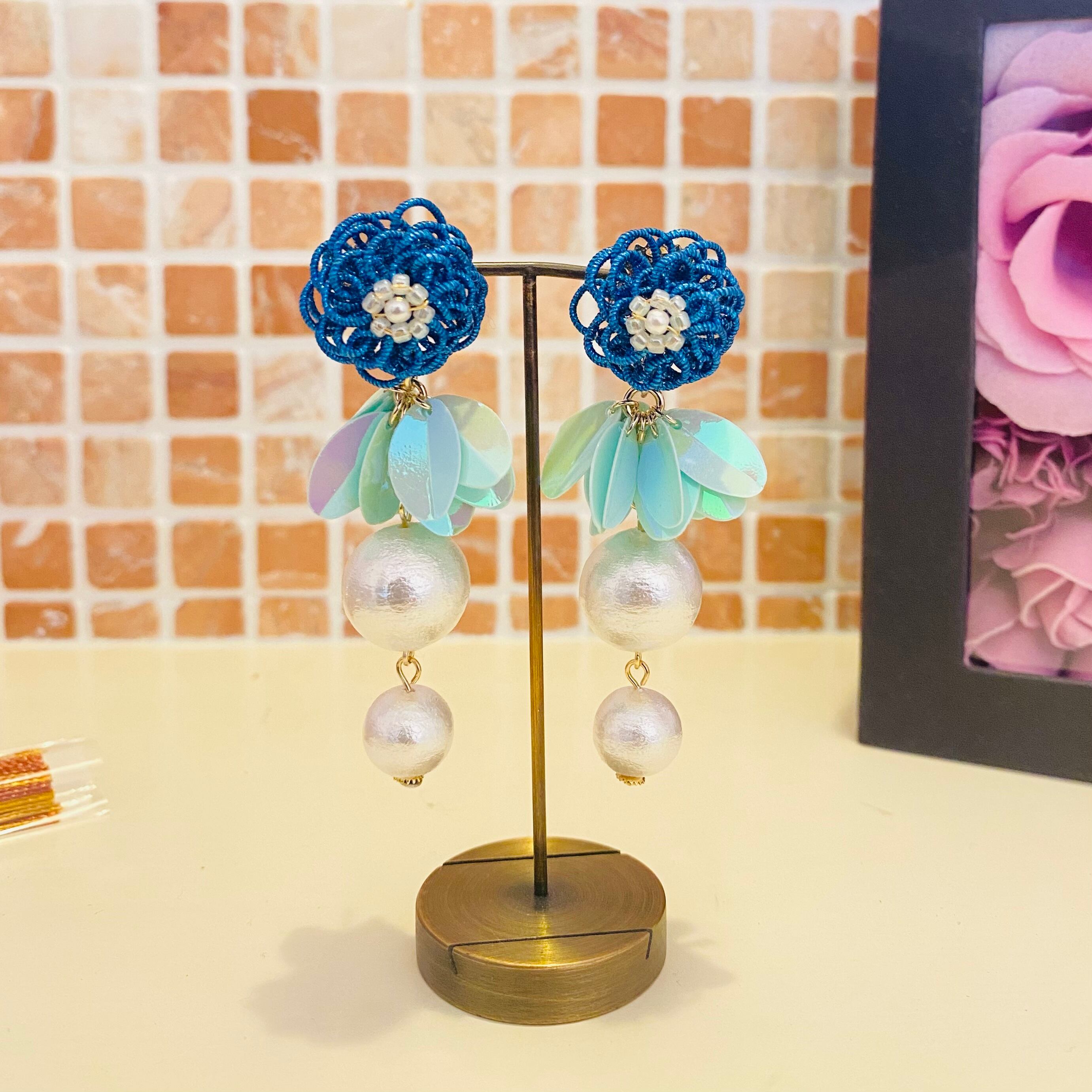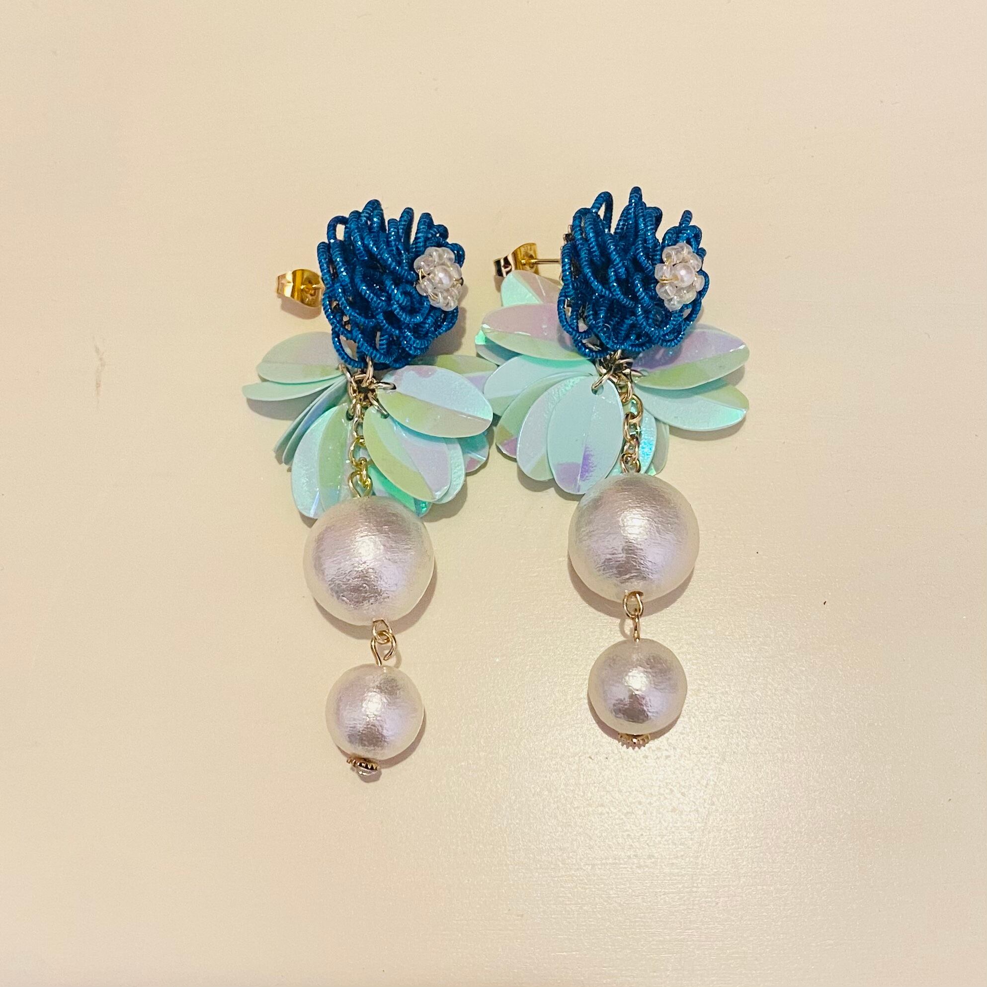 水引のお花にスパンコールとコットンパールの組み合わせです。
