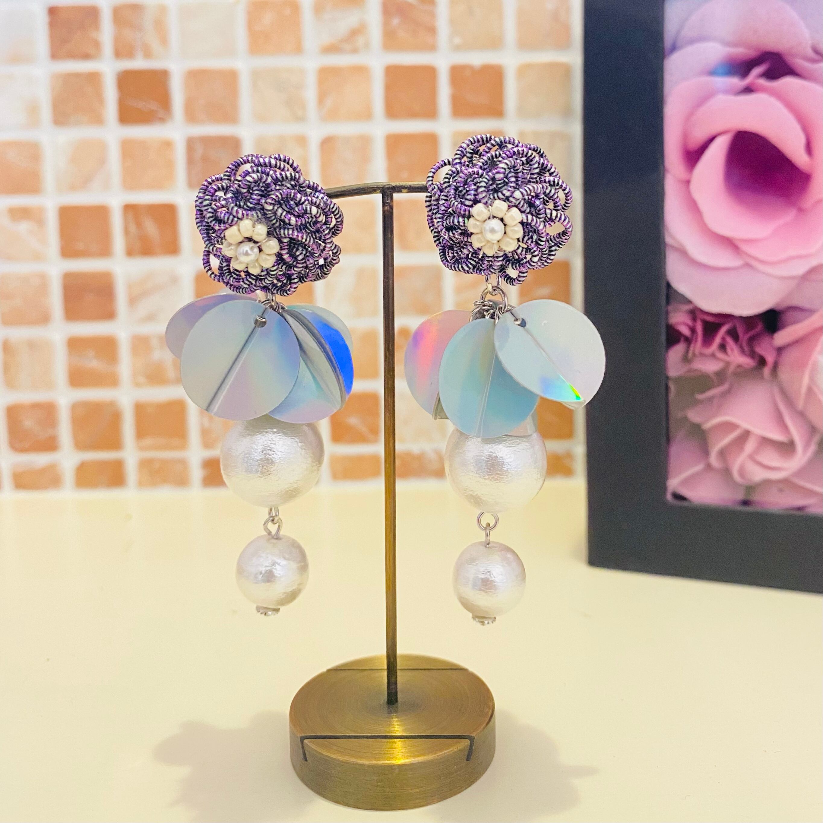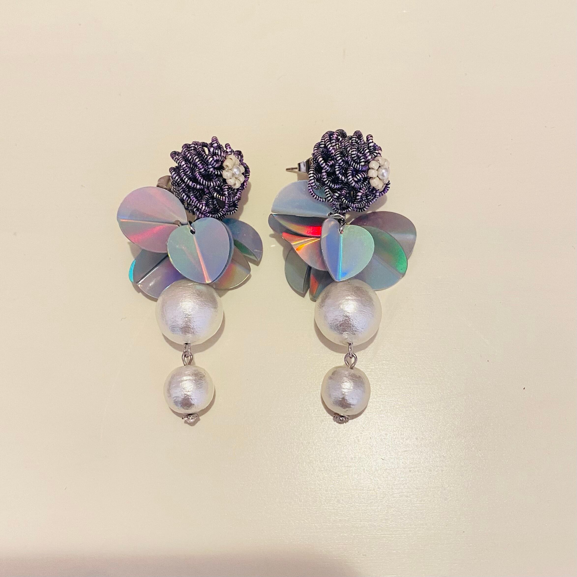 水引のお花にスパンコールとコットンパールの組み合わせです。