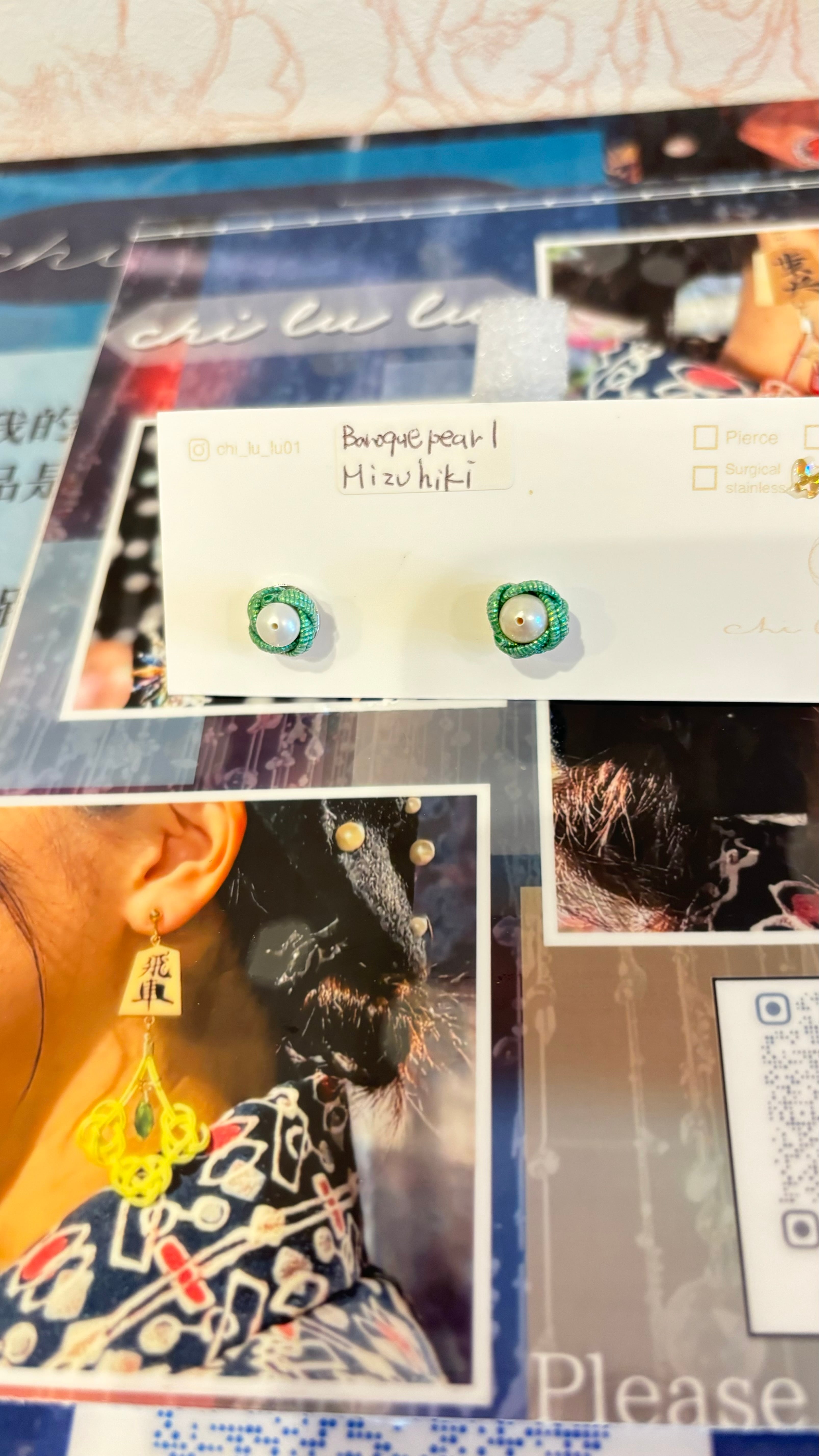 水引玉結びとバロックパールのちっちゃなピアス(ミントグリーン)hako-23